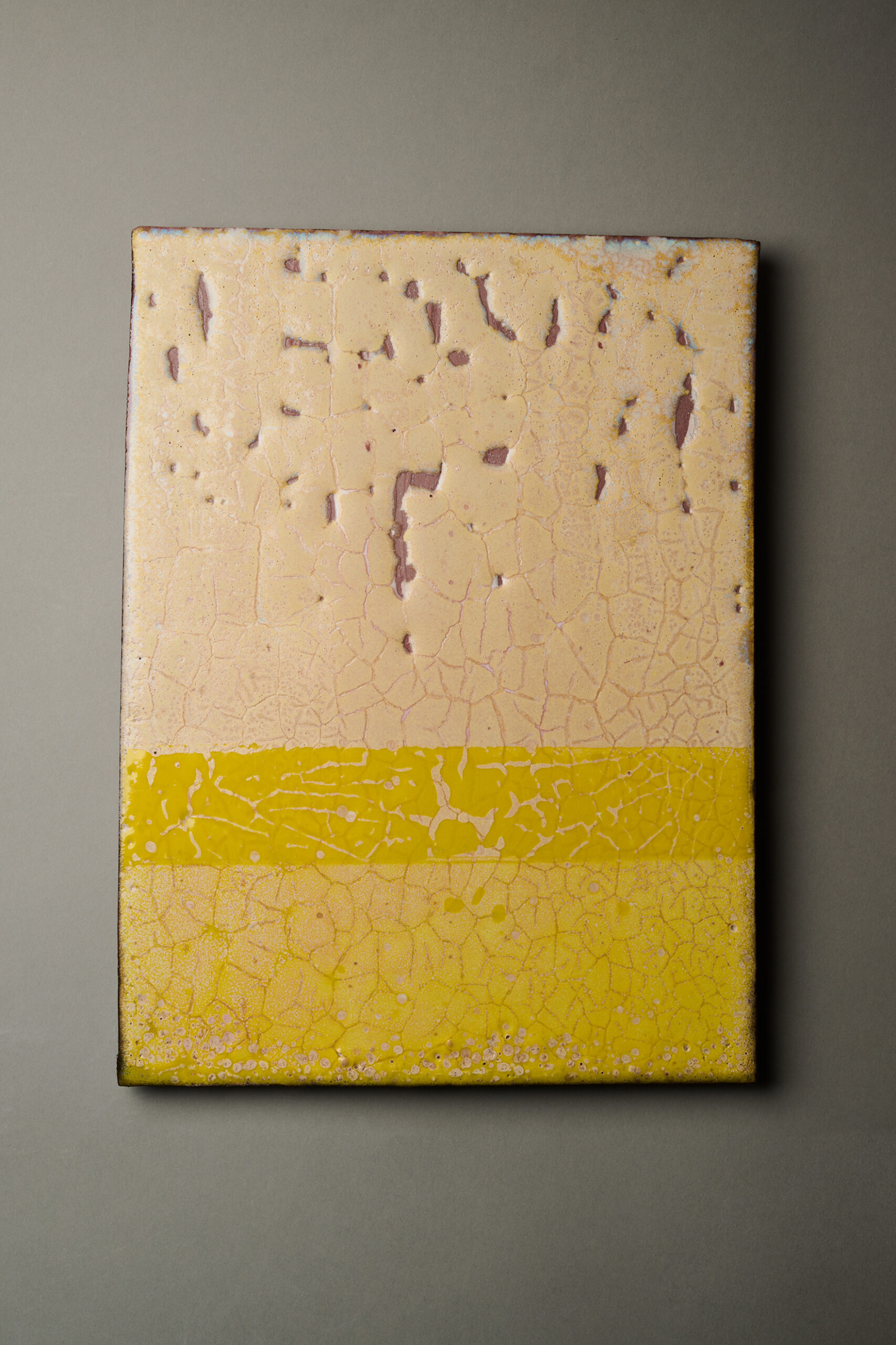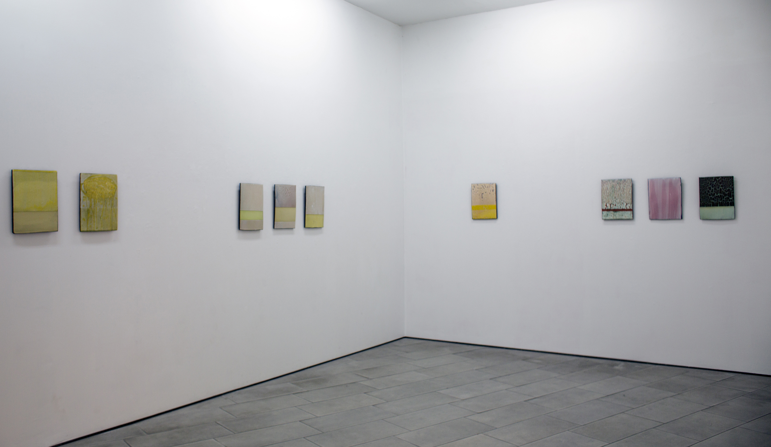 Serien ”Plates”, har varit en lek och experiment med glasyrer som har lagts lager på lager på en liggande yta. Glasyrlagren har byggts upp genom flera glaseringar och bränningar.