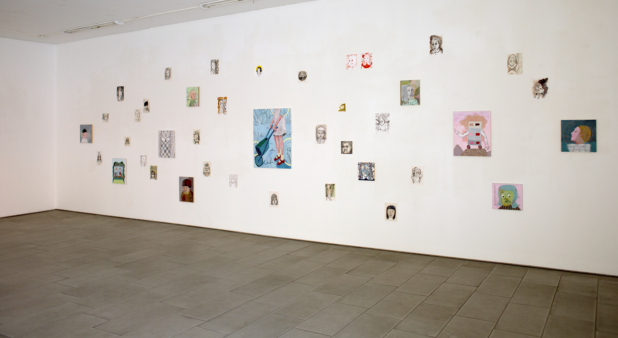 Sett: Varje framträdande sker i en relation. Måleriets sakliga materialitet. Kvillrande, oinställsamma, trotsiga teckningar. Ett arbete som återvänder för att successivt framställa ett annat själv, igen. Bilder som överskrider det civiliserade – estetikens fulländade ordning, politikens målriktade narrativ. Bilder ur det som trätts över.