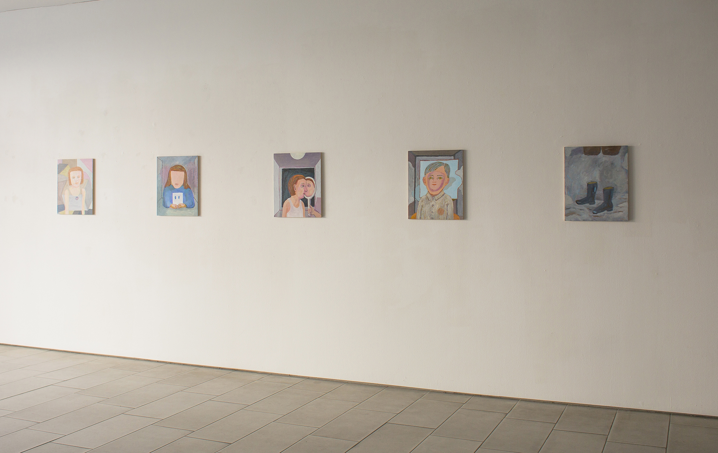 Jaget passerar genom sitt eget barn, till det egna barnet. Främmande intensiteter bryter sig in, träs motvilligt på och över. Accepteras. Börjar om, gör sig hemma i ett annat, gråmålat rum. Det vuxna barnet vill fortsatt fylla sin första roll, som barnet för allt ville lämna. Villkoret för nästa steg är att någon eller något lämnas kvar. En värme blandad med dimma.