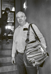 Dessa bilder är tagna under 1983. Jag ville dokumentera min tidigare arbetsplats under en period när det kom tecken på att jobbet började bli hårdare. Det pratades mer sällan om “smörturer”, distrikten uppräknades oftare och man fick fasta arbetstider.