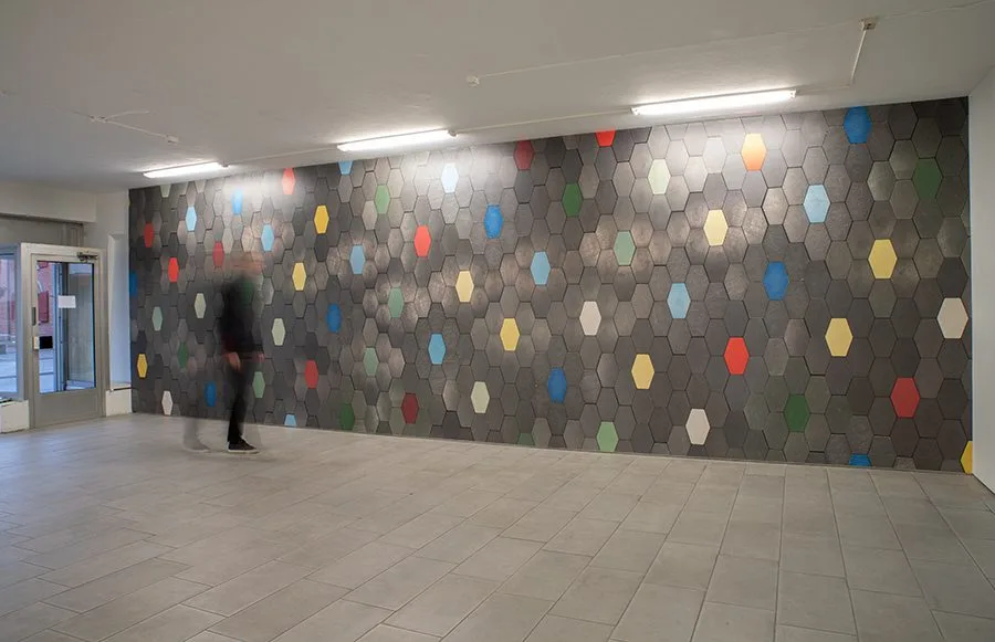 Andreas Nordströms arbeten utgår ofta från formelement hämtade från ting med koppling till hemmet och vardagen, med speciellt fokus på mönster och objekt i perstorpslaminat.