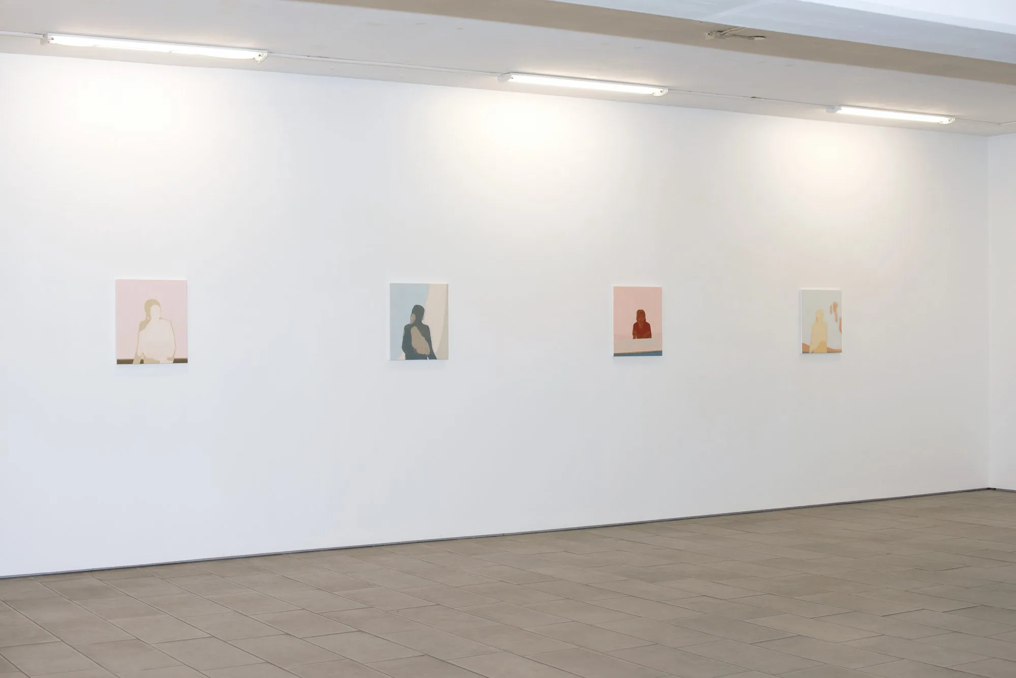 Utställningen på Ping-Pong visar målningar från de två senaste åren. I de nyare verkenville jag lösa upp de formbundna figurerna som jag tidigare arbetat med och istället förenkla gestalterna mer. Sättet att närma mig är inspirerat av stumfilmens stiliserade och ibland skugglika skepnader. Jag börjar med en enkel silhuett som byggs upp lager för lager och låter figurerna växa fram gradvis, men håller mig samtidigt innanför konturerna. Med människofigurens yttre linje som utgångspunkt kan målningen sedan vandra iväg åt ett obestämt håll. Gestalterna som tar form får en mer allmän karaktär och jag tänker mig att figuren på duken döljer sig likt den anonyma människan gör i massan. Samtidigt har måleriets process blivit mer närvarande. Där anas undermålningen, färgskikten och lager av tid, som tillsammans med figurerna bidrar till hela målningens berättelse.