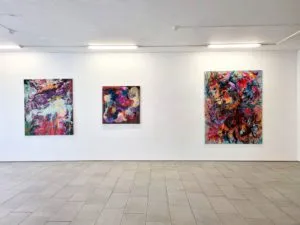 Hennes måleri skapas genom en intuitiv och sökande process där de impulser som inträder när hon klivit in i sina dukar, sker under ett medvetet förhållningsätt. Impulserna ser hon som en signal som kommer ur det omedvetna. Likt automatisk skrift sker penseldragen genom kroppens rörelser. Genom ett medvetet granskande försöker hon navigera och till viss del kontrollera, den ibland kaotiska, energin som dyker upp med impulserna. Medveten styr hon, medveten låter hon sig styras.